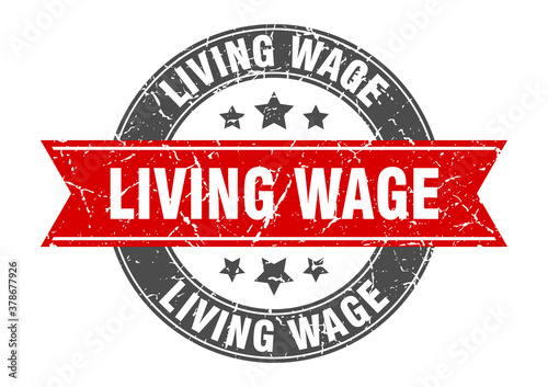 © Aquir, Obraz premium living wage round stamp with ribbon. label sign