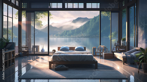 © gustav, Fototapeta premium livingroom and bedroom house created by ai