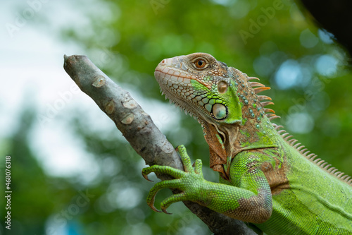 Fototapeta premium lizard, animal, green lizard with blur background