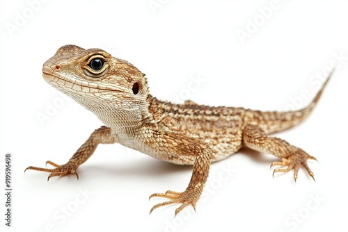 © Barra Fire, Naklejka premium Lizard climbing and basking isolated on a white background