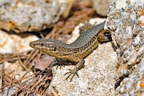 © Peter, Naklejka premium Lizard emerging on Dragonera Island, Majorca, Spain