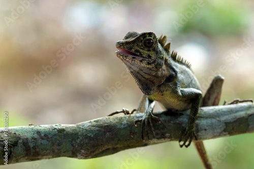 Fototapeta premium lizard, gonocephalus, angle head lizard, a gonocephalus lizard perched on a log