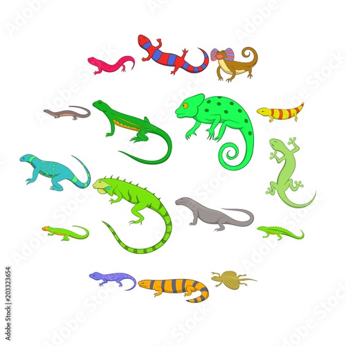 © ylivdesign, Naklejka premium Lizard icons set. Cartoon illustration of 16 lizard vector icons for web