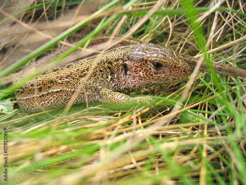© Аркадий Шушанян, Naklejka premium lizard in green grass