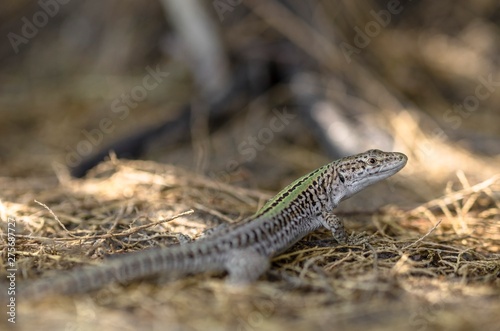 © giadophoto, Fototapeta premium Lizard in the foreground among the shrubs