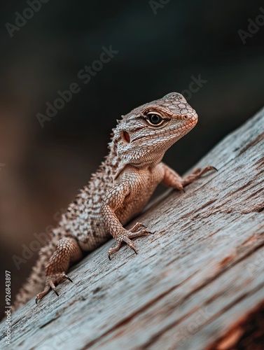 © 2haq, Obraz premium Lizard isolated on wooden background