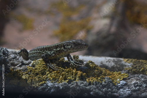 © Oberce, Obraz premium Lizard looking at camera resting on a stone