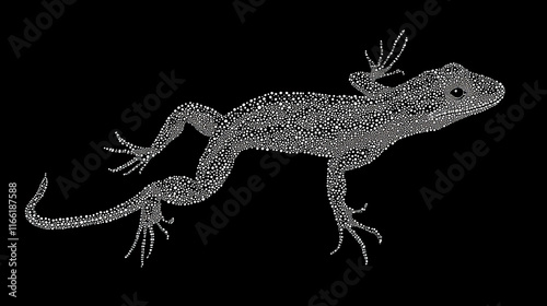 © Ruhi, Naklejka premium Lizard of particles. Silhouette of a lizard is of little circles.