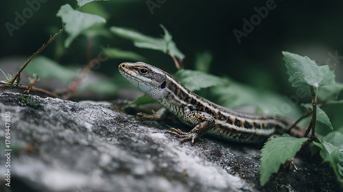 © alexandre, Obraz premium Lizard on a Rock Amidst Greenery