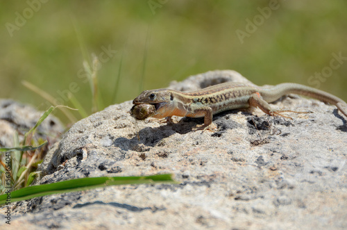 © Helen, Fototapeta premium Lizard on a rock with food in mouth