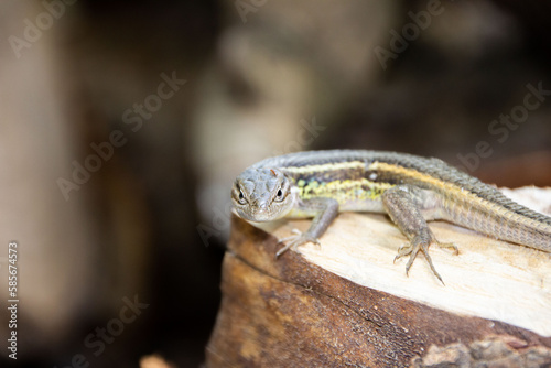 Naklejka premium Lizard on a stump looking at the camera