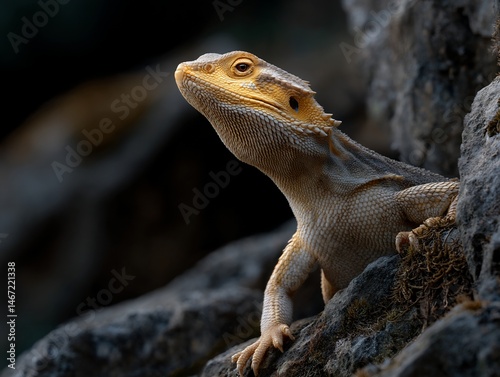 © Helois, Obraz premium Lizard on rock, looking upwards
