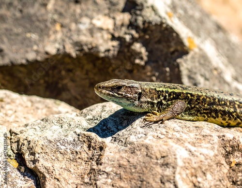 © gopi, Fototapeta premium Lizard on rocks, sunny day