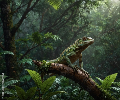 Obraz premium Lizard on the tree forest