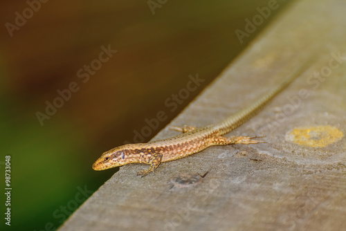 © Sergej Razvodovskij, Obraz premium Lizard on The Wooden Plank