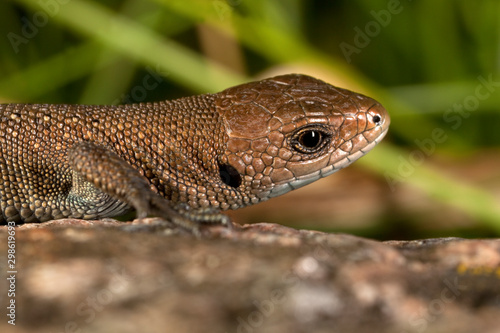 Fototapeta premium Lizard portrait.Summer day. In grass