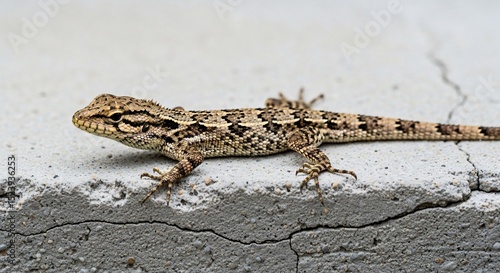 © regulator, Naklejka premium Lizard resting on cracked cement platform