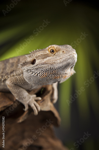 © Sebastian Duda, Obraz premium Lizard root, Bearded Dragon on black mirror background