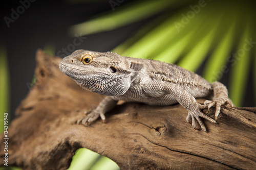 Naklejka premium Lizard root, Bearded Dragon on green background