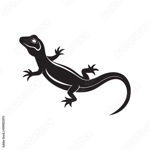 © 69creativedesigner, Naklejka premium lizard silhouette, black and white silhouette, vector and illustration
