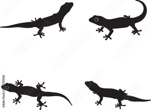 © Hamza, Fototapeta premium Lizard Silhouette Set – Reptile Vector Illustrations for Wildlife, Biology, and Nature-Themed Design Projects