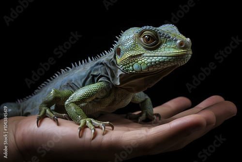 Fototapeta premium lizard sitting on a human hand, gecko lizard