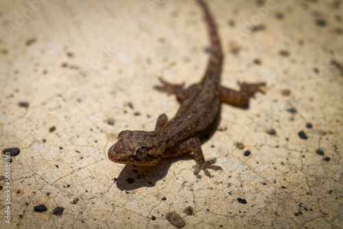 © Nicola78/Wirestock Creators, Naklejka premium Lizard walking on a ground, close-up