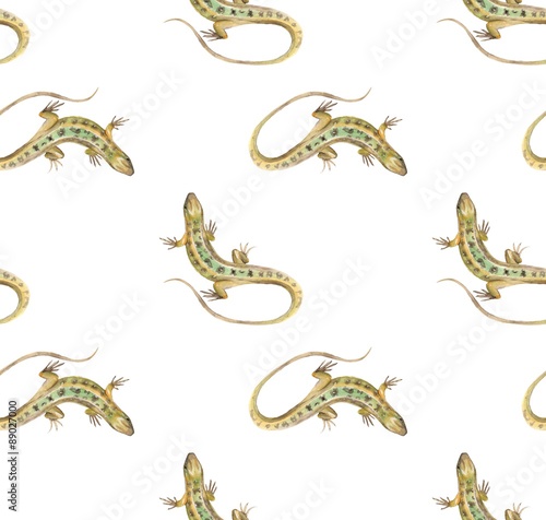 © Gribanessa, Fototapeta premium Lizard. Watercolor seamless pattern. Art background 1