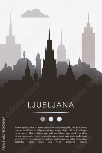 Fototapeta premium Ljubljana city template for website, presentation, front page, invitation, publication sheet with skyline, landmarks. Vector Slovenia image layout, simple and grayscale