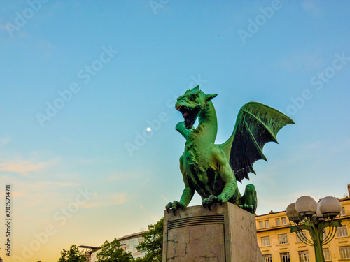Fototapeta premium ljubljana, dragon, bridge, slovenia, capital, symbol, old, sculpture, europe,...