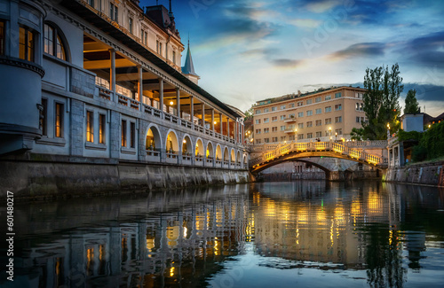 Naklejka premium Ljubljana Market arcade on the Ljubljanica river. Ljubljana, capital of...
