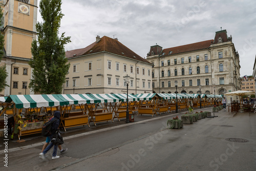Naklejka premium Ljubljana,Slovenia,6,2016: Street, river, bridges with dragons, magical city.