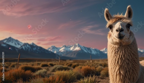 Obraz premium Llama in Majestic Mountain Landscape