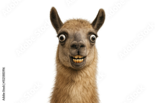 Obraz premium Llama making goofy expression, exposing teeth against transparent background