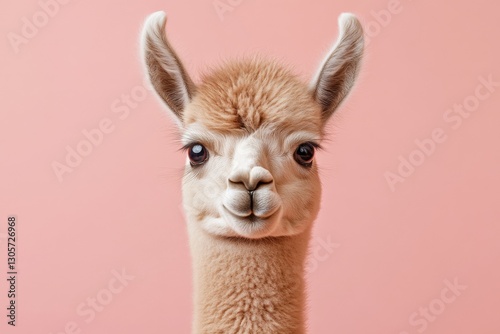© Odin AI, Obraz premium Llama portrait with soft fur and curious expression against a pastel pink background