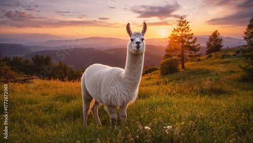 © TheWaterMeloonProjec, Fototapeta premium Llama Positioned in a Specific Spot