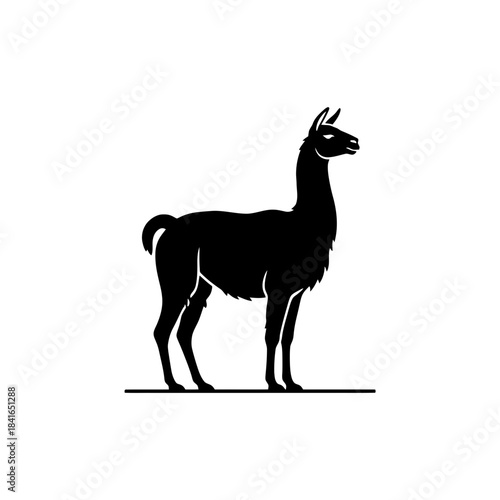 © Sojib, Obraz premium Llama silhouette standing profile minimal farm vector illustration