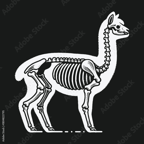 Naklejka premium Llama skeleton anatomical illustration on a dark background.