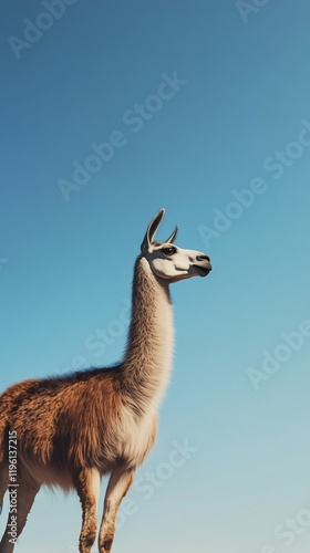 Obraz premium Llama standing against a clear blue sky.