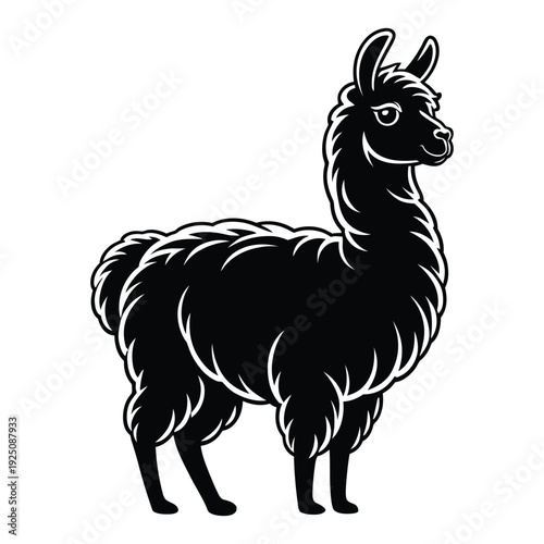 Fototapeta premium Llama with fluffy fur Vector, Silhouette, Illustration