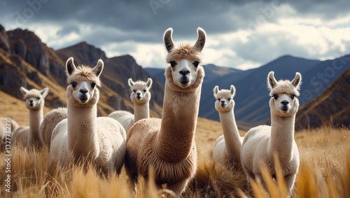 © Holo Frame, Obraz premium Llamas (Alpaca) in the Mountains