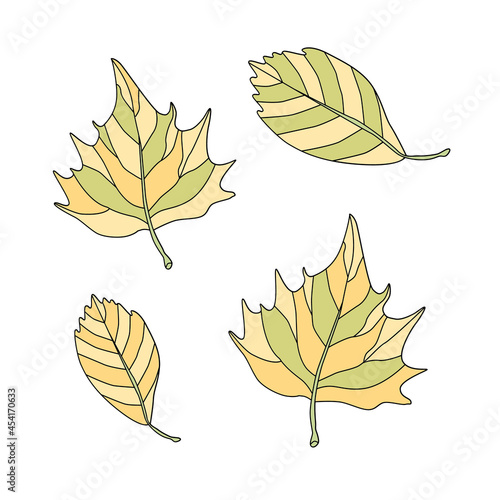 Fototapeta premium llustraItion with autumn leaves. Vector set for design of autumn postcard, card, invitation, poster, advertisement.