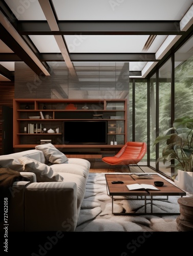 © Aqib, Fototapeta premium lmodern iving room cream color UHD Wallpaper