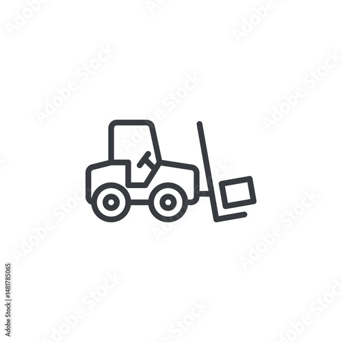 © alekseyvanin, Naklejka premium Loader with harvested goods line icon