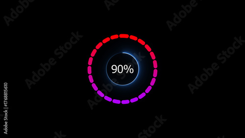 © MDABDUL MUMIN, Fototapeta premium 90% loading bar icon illustration. a modern neon red color neon loading illustration. on a black background. and creating a stunning 4k illustration.