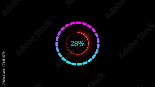 © MDABDUL MUMIN, Fototapeta premium 28% loading bar icon illustration. a modern neon red color neon loading illustration. on a black background. and creating a stunning 4k illustration.
