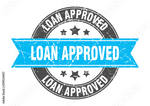 © Aquir, Fototapeta premium loan approved round stamp with turquoise ribbon. loan approved