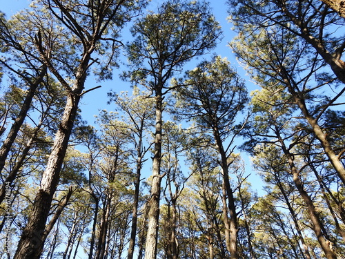 Fototapeta premium Loblolly pine trees towering above the maritime forest, on Assateague Island, Worcester County, Maryland.