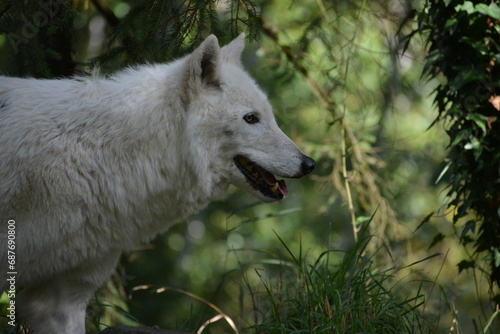 © Adrian Lazcano, Obraz premium lobo blanco en bosque