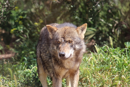 Fototapeta premium Lobo en cautividad en plena naturaleza , lobo iberico , europeo y de la tundra